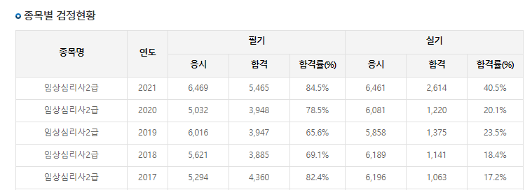 사실 필기의 경우에는 5과목이라고는 해도 심리학을 전공하시는 분들이라면 준비를 하면 어렵지 않게 통과할 수 있는 수준으로 보입니다. 합격률은 보통 60%를 훌쩍 뛰어넘어 80%를 넘는 경우도 있습니다. 그래도 준비를 소홀하게 하면 안됩니다.