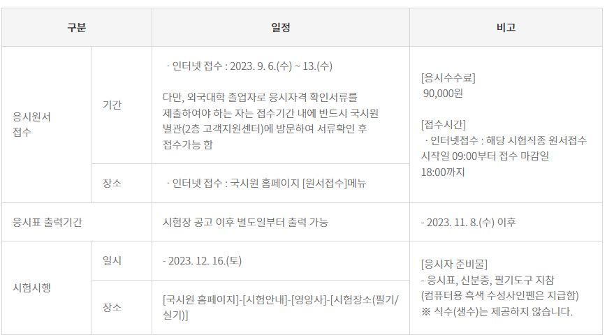그래서 지금 2024년의 시험일정은 아직 발표가 되지는 않았지만 작년 시험을 보면 대략적인 시험일정을 유추해볼 수 있습니다.